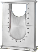 格柵_上方為緊急溢流排放口,當格柵自清洗系統失效或者格柵超載的時候,水流可以從格柵